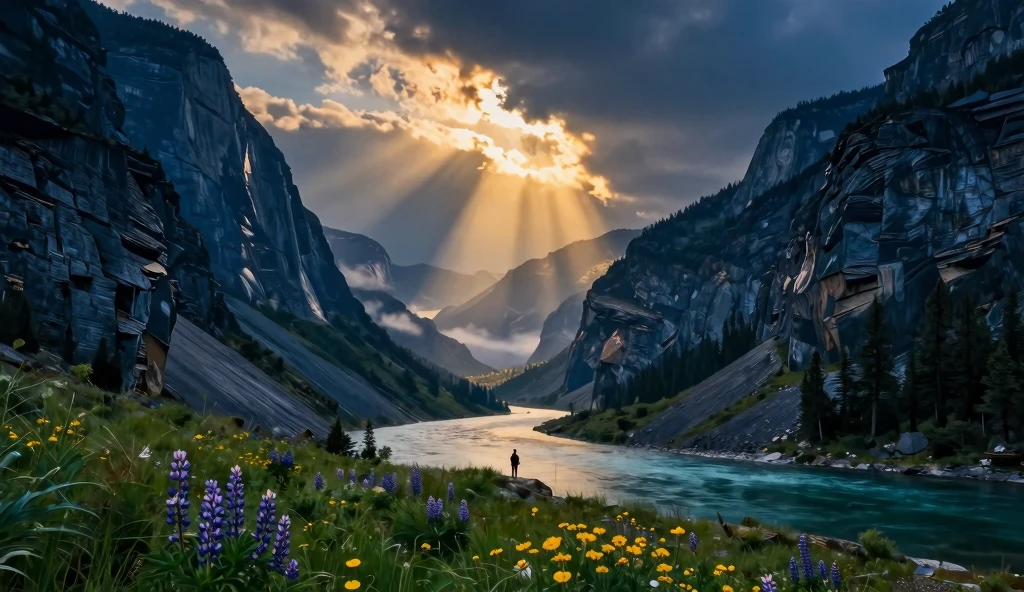 Vibrant Autumn Landscape: Majestic Maple Tree Against Snow-Capped Mountains